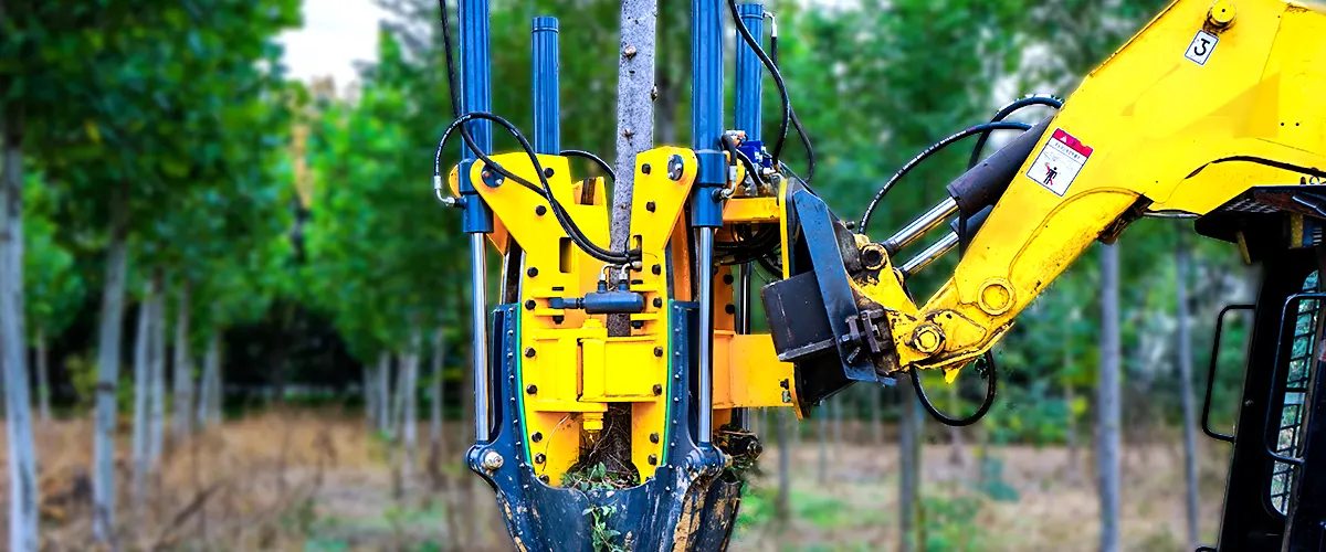 A tree spade is a machine that mechanizes the transplanting of large plants, such as large bushes and small or medium trees. When choosing the right-sized tree spade, you should consider the type of tree, the size of the root ball, digging depth, and if you plan to replant the tree.